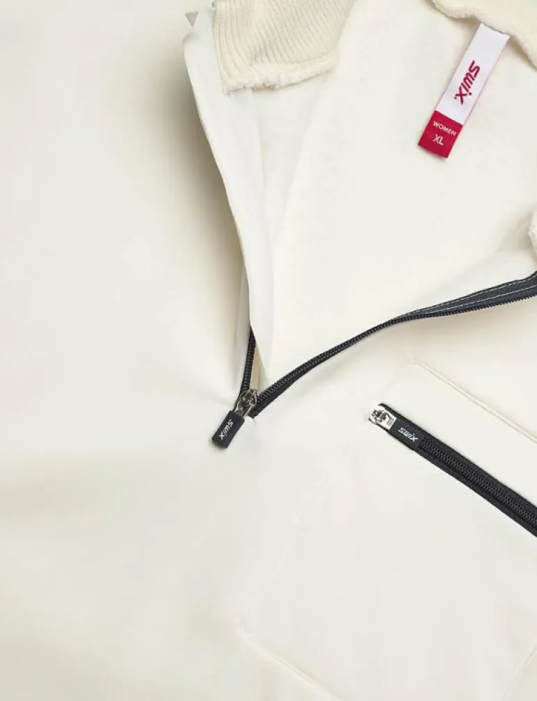 - Har en ficka med dragkedja på bröstet