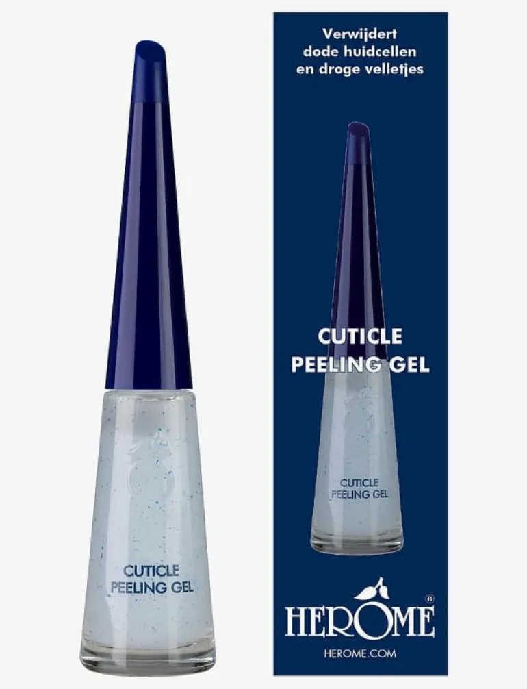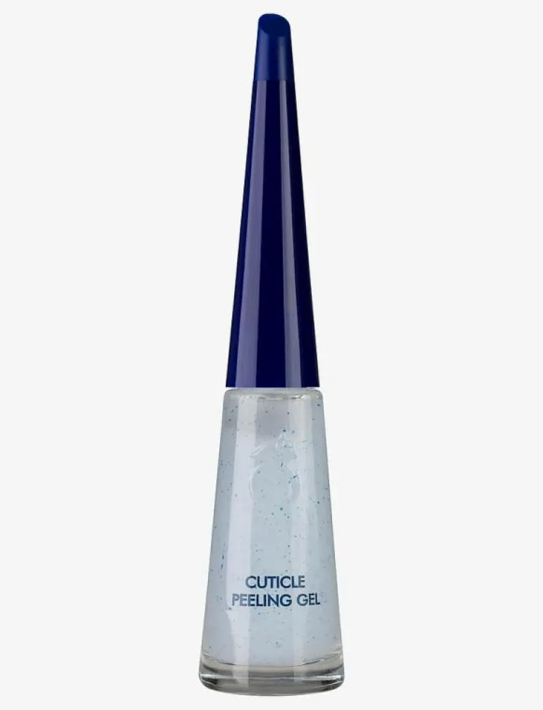Så gör du:Påför ett generöst lager av Cuticle Peeling Gel i en U-form runt nagelbanden. Låt den verka i 5 minuter och skrubba därefter. Sköl med vatten tills alla rester av produkten är borta. Skjut nagelbanden försiktigt tillbaka med en nagelbandsskjutare eller rosenpinne.