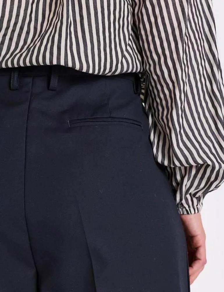 - Pressade veck i benen skapar en polerad look.