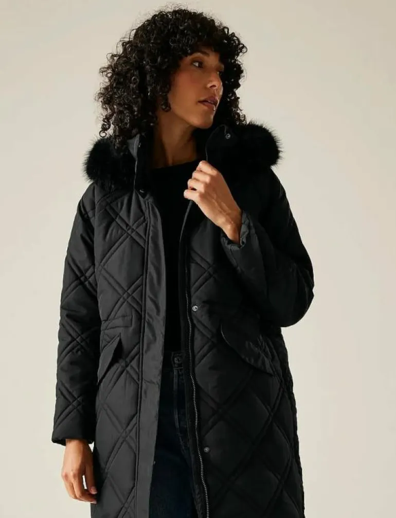 - Fast huva med avtagbar fuskpälskant