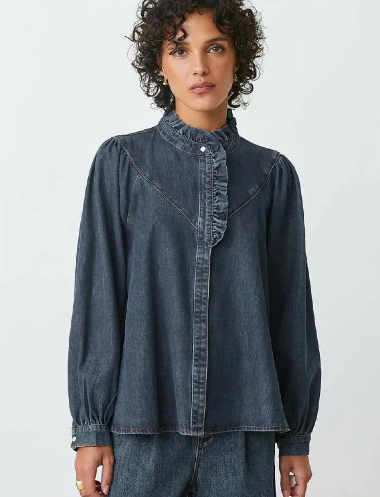 - Hög hals med volanger