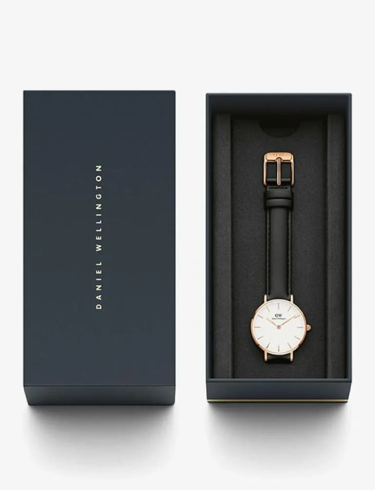 - Roséguld-färgade visare och boett