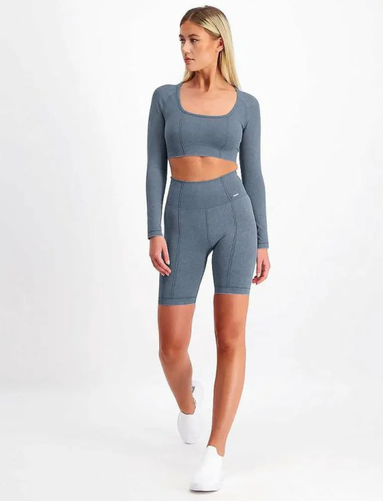 Washed Denim Seamless Biker Shorts – Träningstights