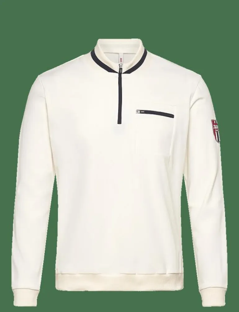 - Har en ficka med dragkedja på bröstet