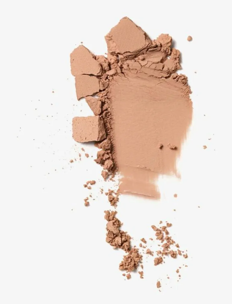 Badda pudret i pannan, på näsan, hakan och kinderna. Stryk sedan försiktigt utåt med uppåtgående rörelser.