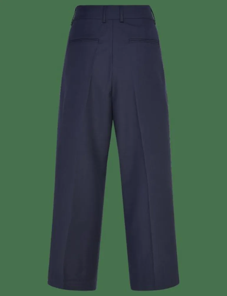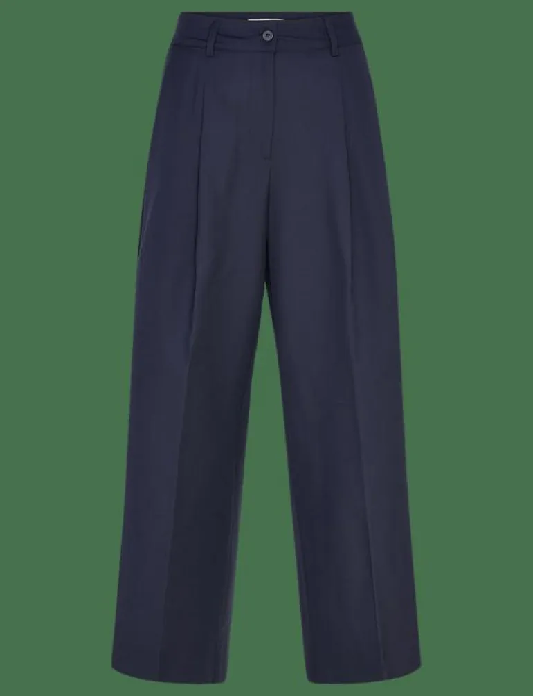 - Pressade veck i benen skapar en polerad look.