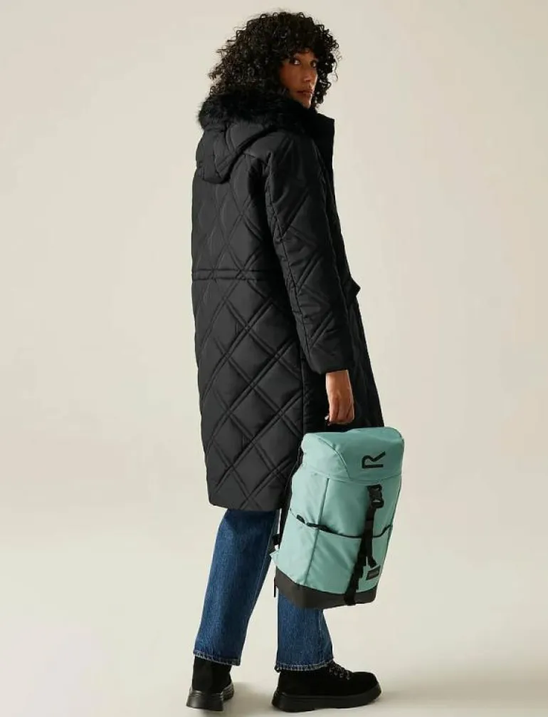 - Fast huva med avtagbar fuskpälskant