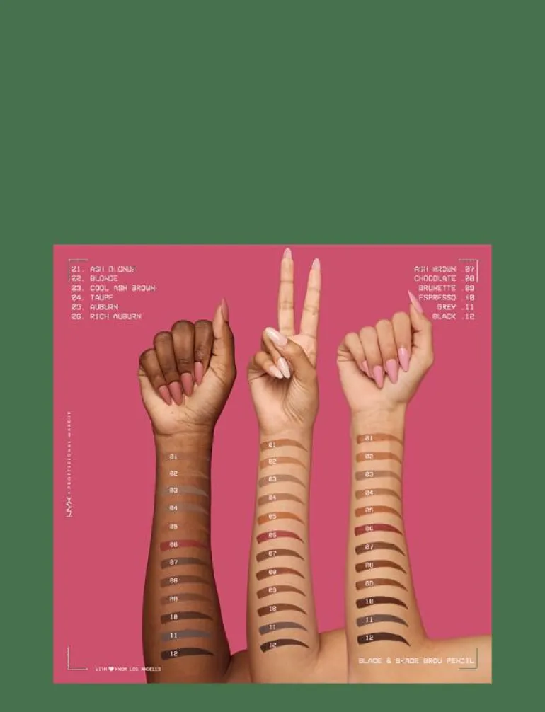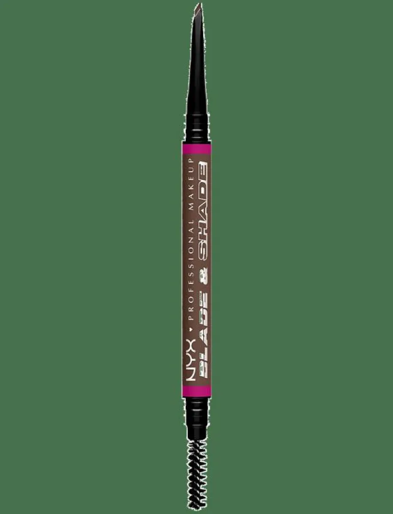 Steg 1: BLADE IT! – Definiera brynen genom att rita små ”hår” med den spetsiga änden av pennan. Steg 2: SHADE IT! – Skugga brynen på glesa ställen med pennans platta ände. Steg 3: Borsta brynen så färgen smälter in.
