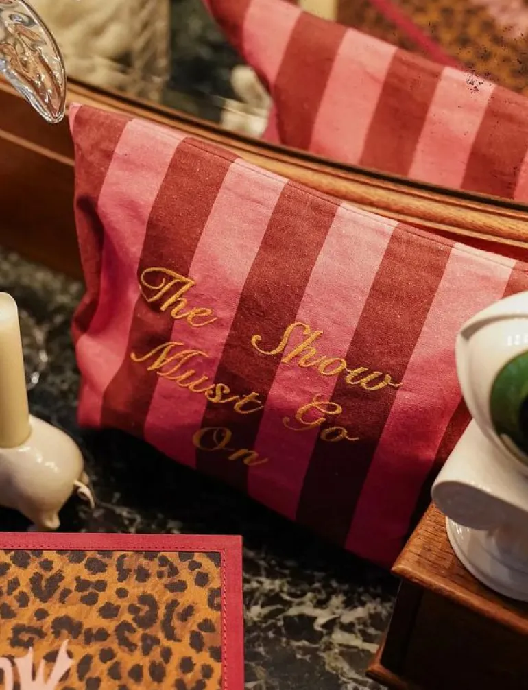 - Broderad med frasen ’The Show Must Go On’